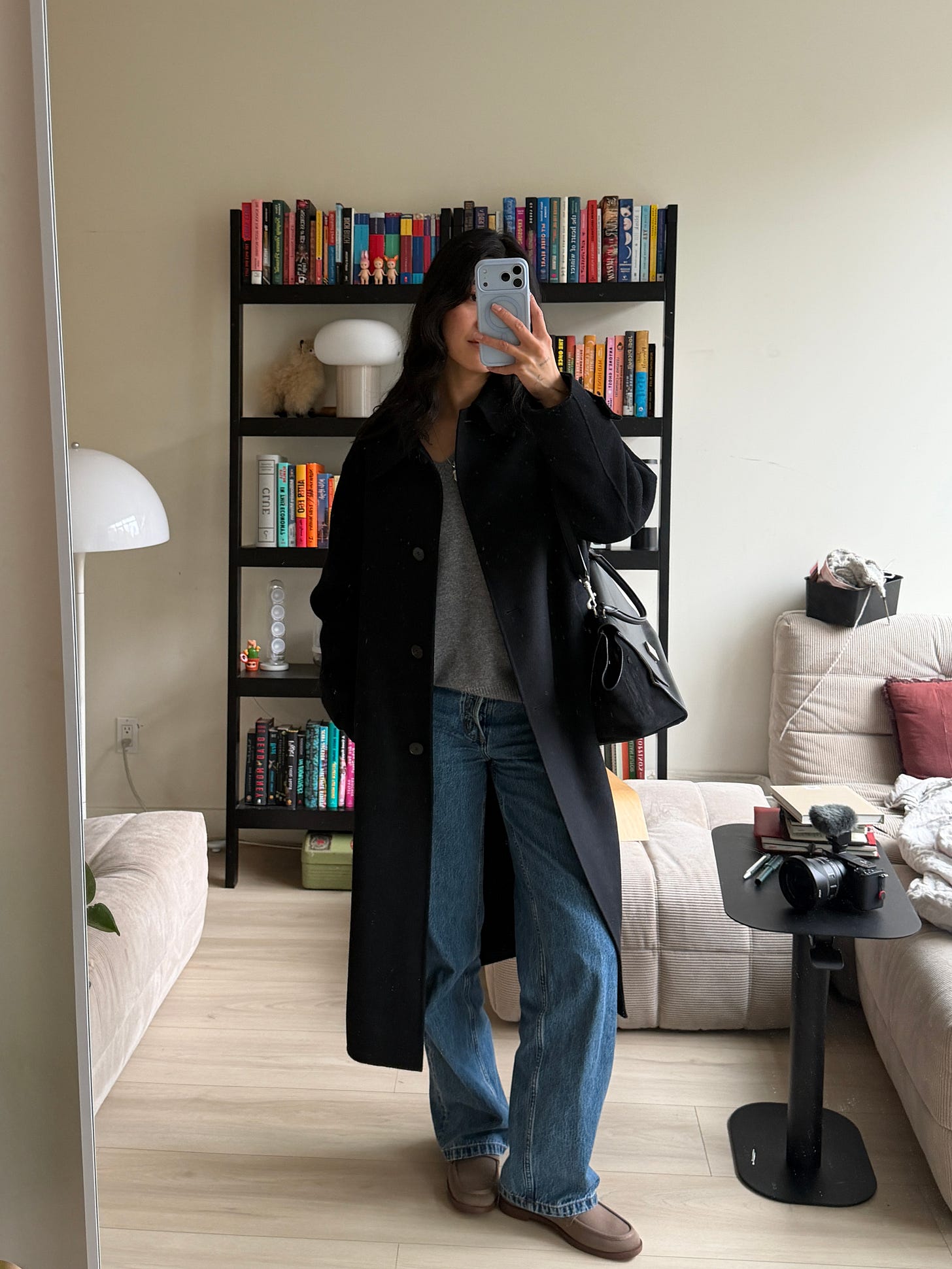 I ran errands during the day and then switched out the ballerinas for my vintage heeled Gucci boots for dinner mostly because it was POURING that night. I visited Locanda Dell’Orso with my sister for dinner for a cute girls night. As much as I wanted to skip on a jacket, the weather was not on my side so I opted for this structural SHUSHU/TONG piece I thrifted earlier this year. It’s a full denim a-line coat. I definitely didn’t do it justice with the photo so I’ll have to capture it again in a different outfit.