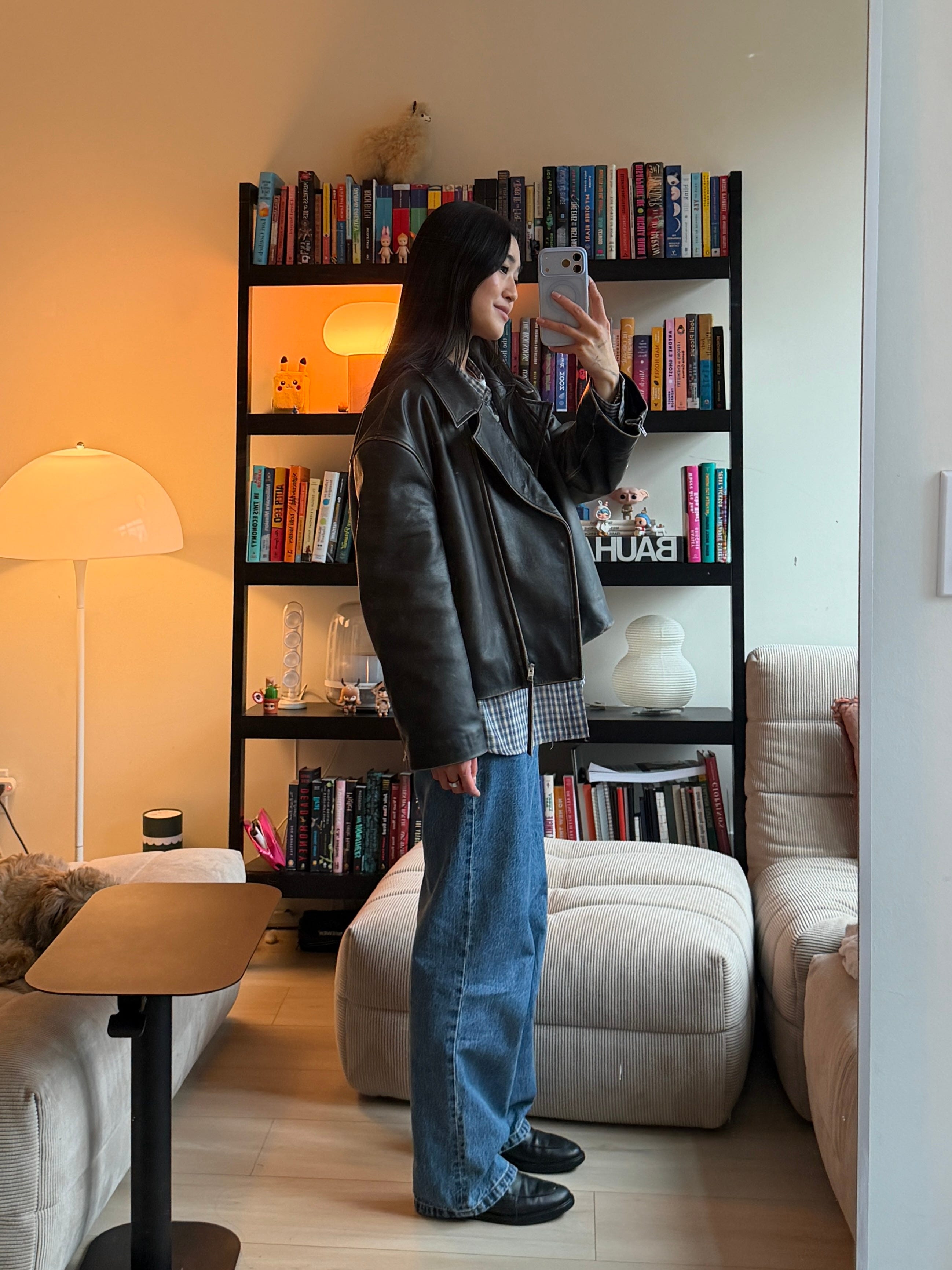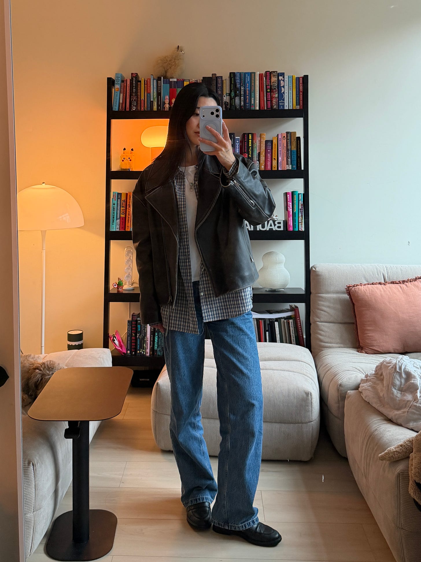 I had a mid week errands day just dropping off packages and picking up groceries so this was the perfect, brainless uniform to throw on. I’ll be a plaid shirt girl for life because it really is just the perfect layering piece for transitional weather. I also love that the shirt is longer than my jacket because it brings more flow to an otherwise rigid piece.