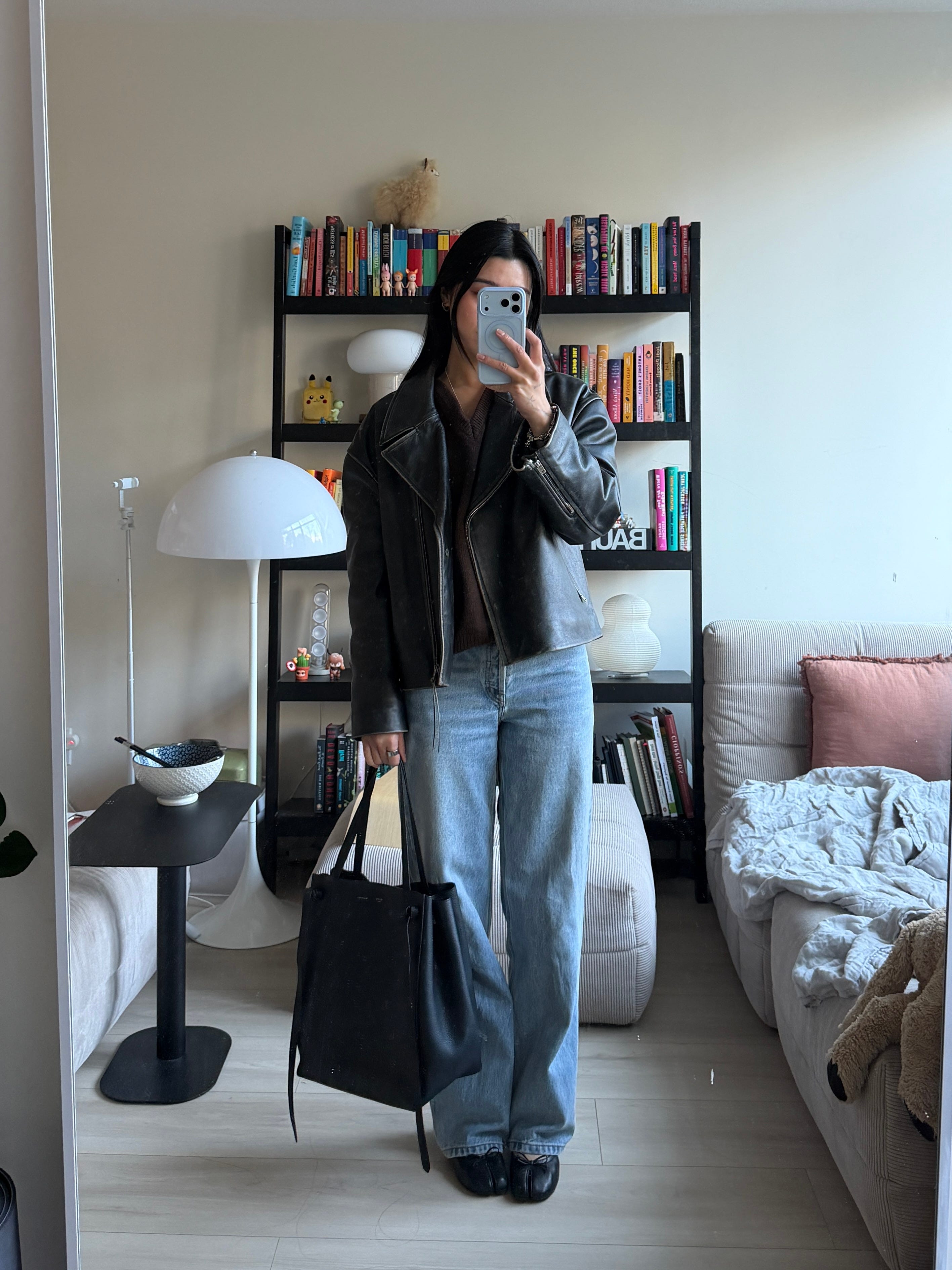 The leather jacket + sweater + jeans uniform is fail proof for this time of year but I love how my old Celine tote and the ballerinas gave this look a more fem touch. I’m also feeling proud of myself because I said I wanted to wear this jacket more this season and it’s been on rotation for a few weeks now.