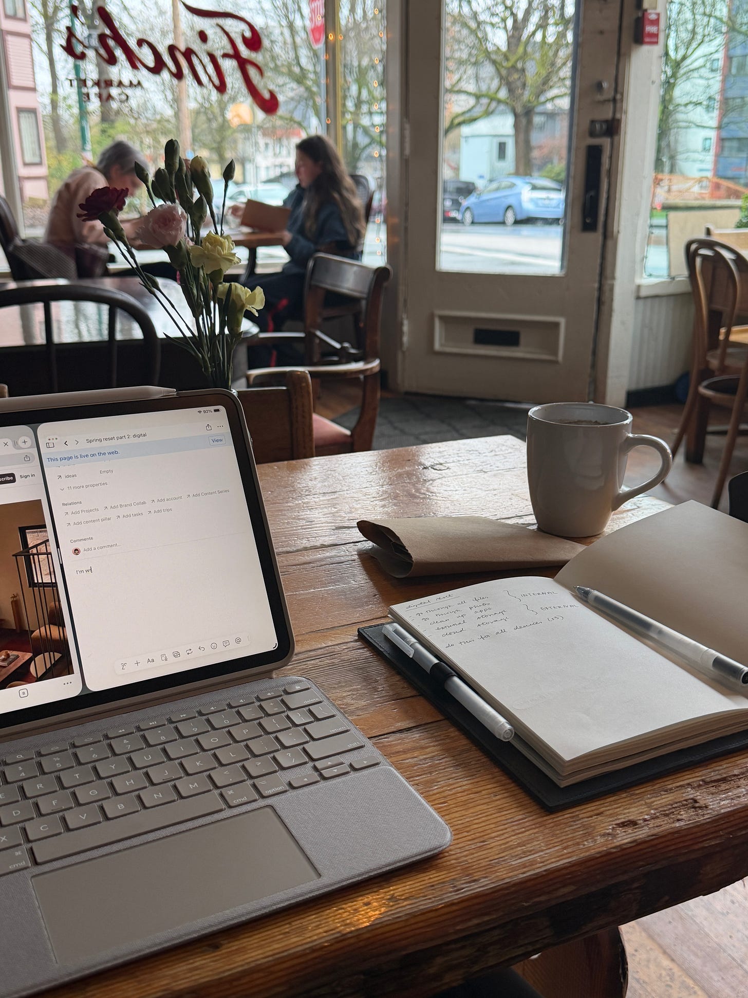 I can feel my eyes glazing over ever so slightly as I watch the rain hit the already wet sidewalk to the beat of MGMT. Every time the door opens, an icy breeze creeps in, reminding everyone that it’s not quite spring. Thankfully, the inside of Finch’s café feels like a warm haven from the soggy weather. I’m all cozied up in a wool peacoat (yes, I’m still wearing it indoors), I’ve eaten my favorite sandwich (pepper salami from said café), and feeling more ready than ever to tackle my digital reset.