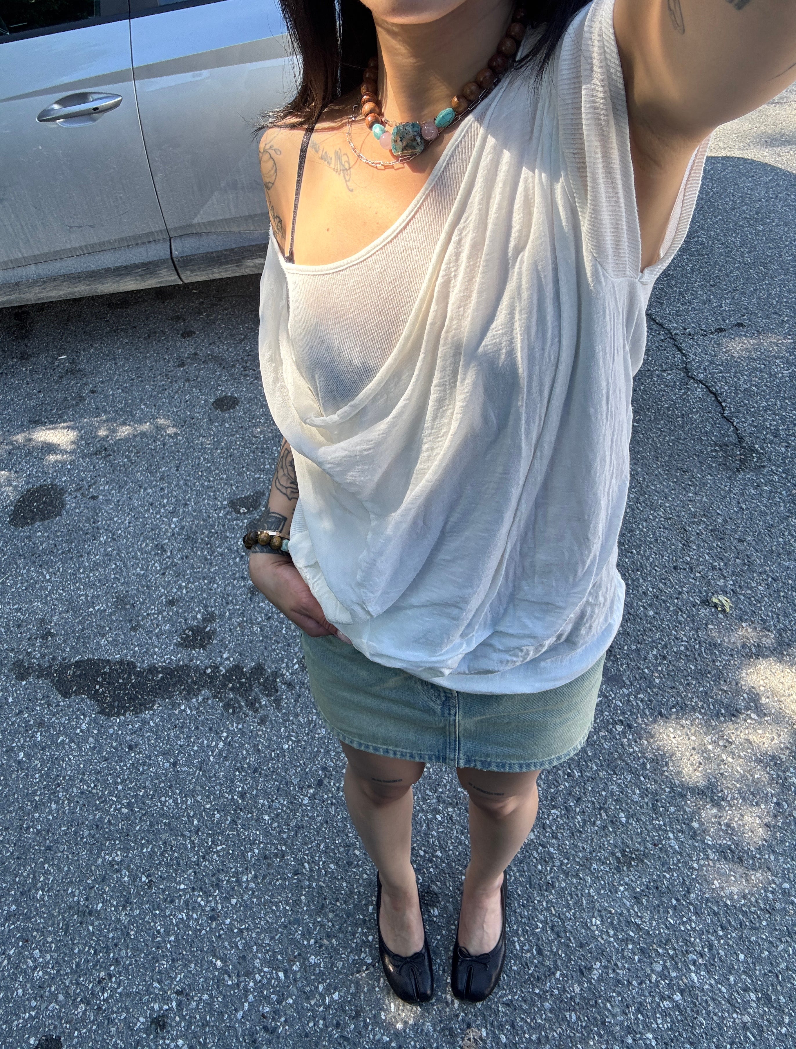 The top is a size too big for me but I picked it up vintage from Front and Company so I didn’t have much choice. The length and size is mainly what feels tough to style but I did really like it with a denim skirt and my ballerinas.