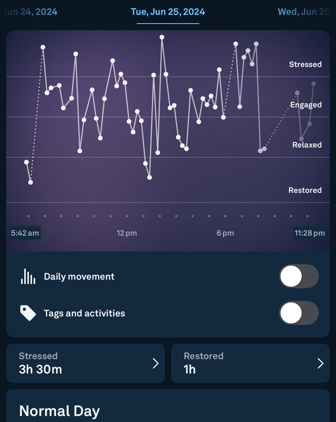 (Note: I now know that your Oura data doesn't compare you to others. It collects data from your cycles, health, and life. When it tells me I've had a normal day, it means normal for me. In other words, a normal day for me would be a stressful day in someone else's life. Over the years, my body had adapted to being constantly overloaded and had accepted this as its standard way of life.)