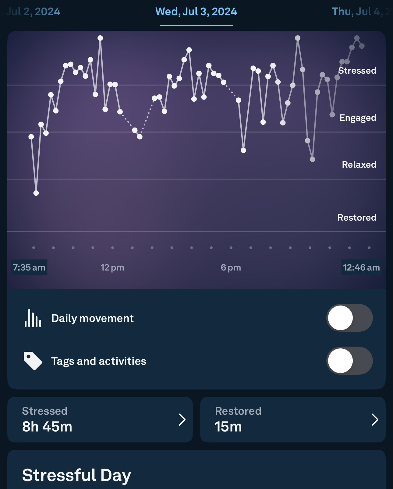 I've never heard my therapist gasp until that moment. I looked at her quizzically. She quickly pulled out her phone to show me her Oura stress chart. As understanding sank in, I was horrified.